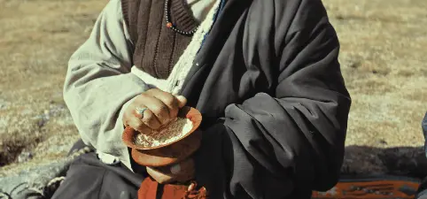 糌粑这玩意儿,90年代玛治县牧民当命根子。青稞炒熟磨粉,拌点酥油茶能攥成团,零下二十度揣怀里当干粮,三天不馊。杨紫拍这段时,道具组特意从青海牧民家借的现磨粉,她第一次吃就呛得直咳,结果导演没喊停,全剪进去了——现在回看,白菊被呛出眼泪的特写,比任何台词都说明“这地方是真苦”。