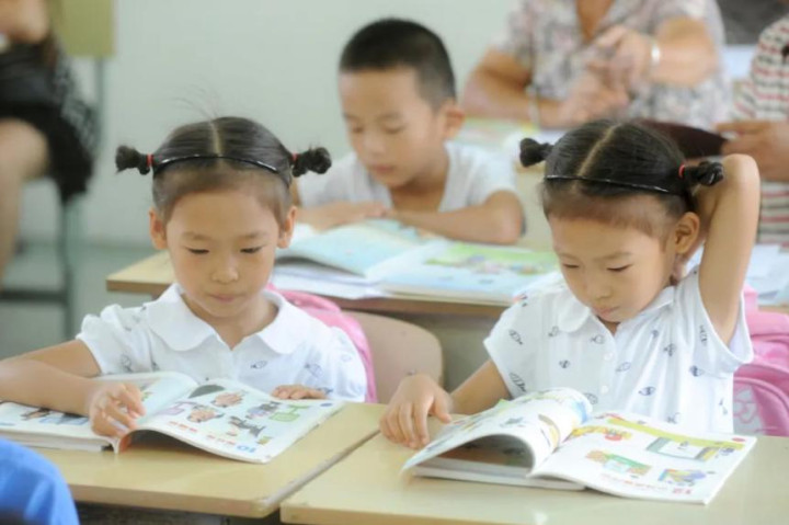 2013年8月31日,宋其真(右)、宋其优(左)姐妹小学入学报名(周晨阳摄)