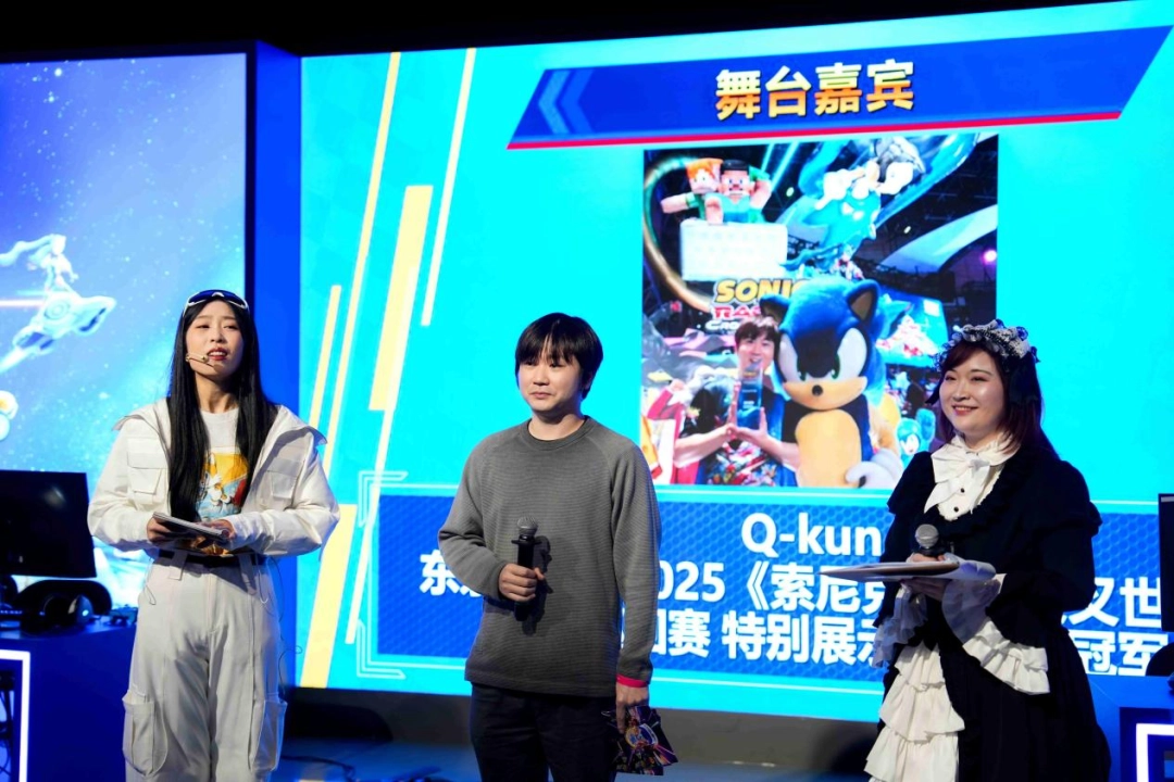 顺带一提,本次官方还邀请到了Bilibili知名UP主,也是《索尼克赛车 交叉世界》亚洲巡回赛特别展示赛的冠军Q-kun作为特邀嘉宾加解说出场,高水平玩家的游戏理解外加作为知名UP主的好口条,与主持人和现场观众一同将气氛炒热到了极点。